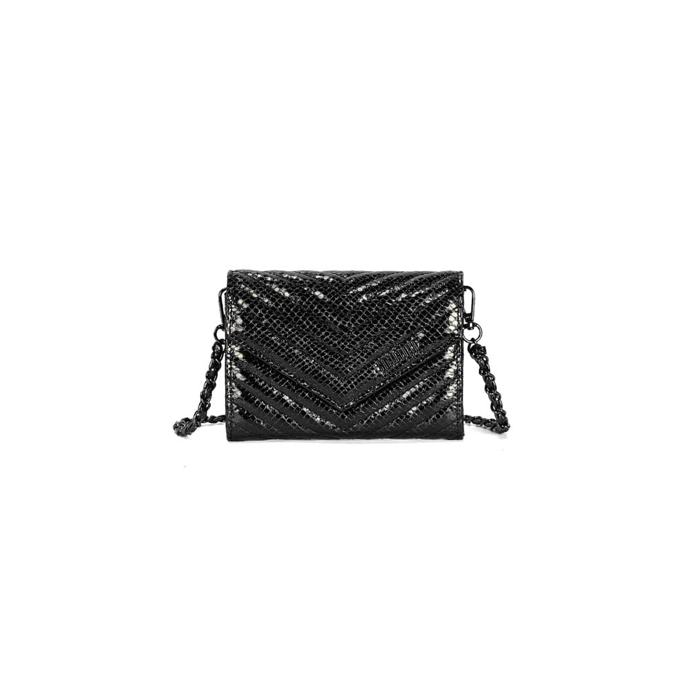 Ideal para eventos noturnos ou compromissos casuais, a Bolsa Carteira Santa Lolla Preta Metalizada é uma escolha certeira para quem deseja um acessório que une elegância e funcionalidade. Use-a para carregar seus itens essenciais com segurança e estilo, sem abrir mão do conforto.