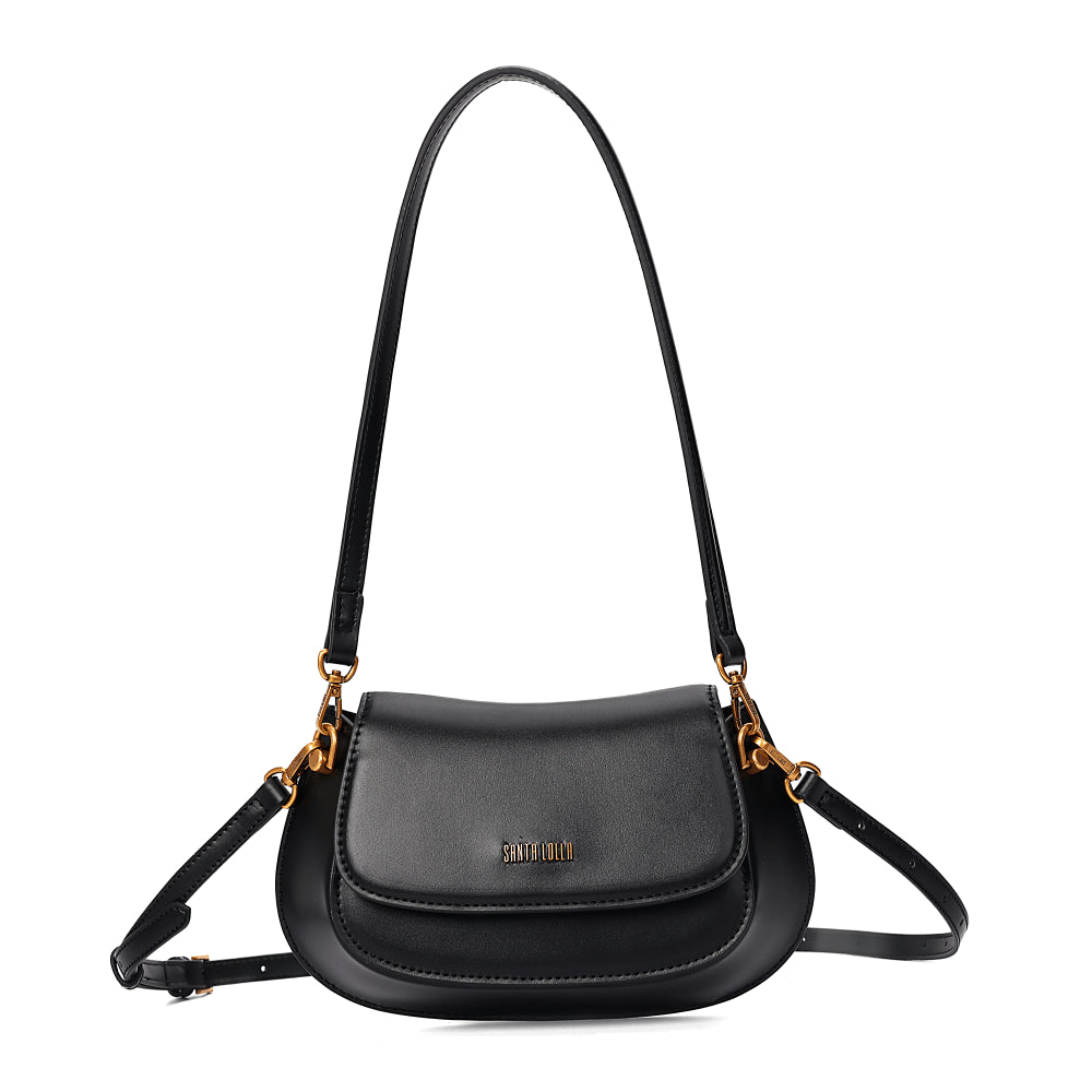 Com um acabamento refinado e um toque suave, a Bolsa Transversal Santa Lolla Preta é confeccionada em material sintético premium. Seu fechamento em flap assegura segurança e praticidade, enquanto o design elegante incorpora duas alças versáteis que permitem seu uso tanto no ombro quanto à mão.