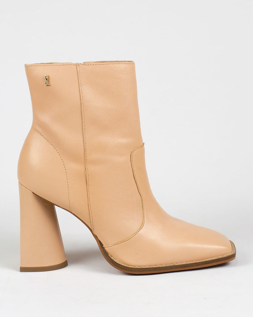 Bota Santa Lolla salto grosso invertido cor nude rosado. Conta com shape quadrado e é confeccionada em couro super macio. Você vai amar!