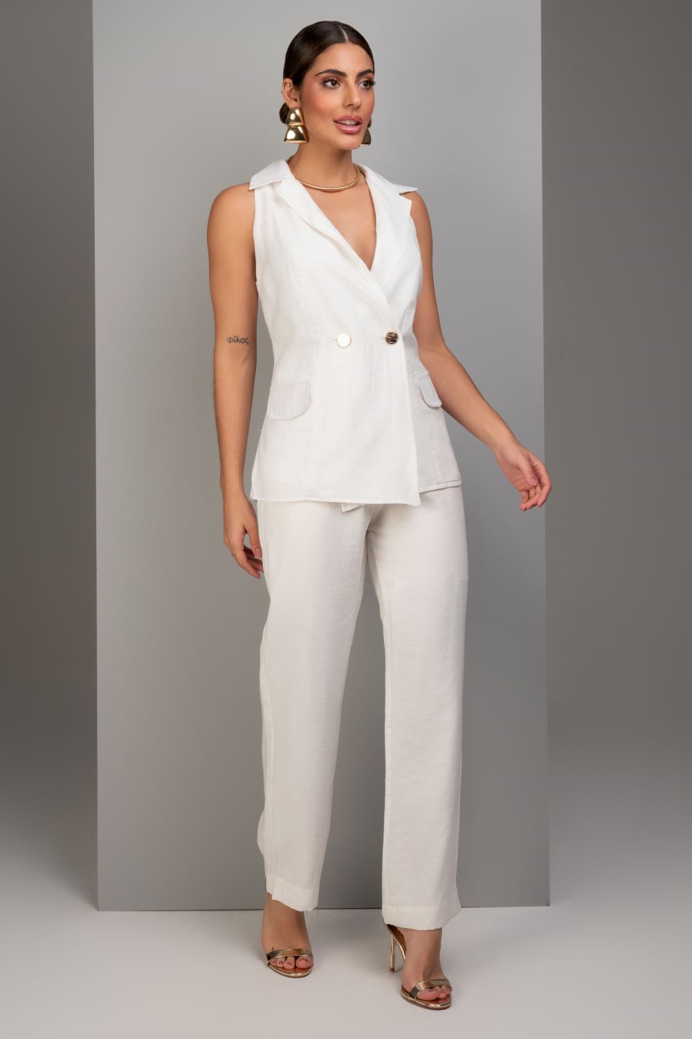 Confeccionada em tecido premium de alta qualidade, a calça apresenta um corte reto impecável, valorizando a silhueta sem abrir mão da liberdade de movimentos. A cor off white traz leveza e permite combinações versáteis, criando looks refinados e atemporais. Combine com blusas ou camisas sociais para um visual elegante e profissional ou com tops mais descontraídos para composições modernas e estilosas.