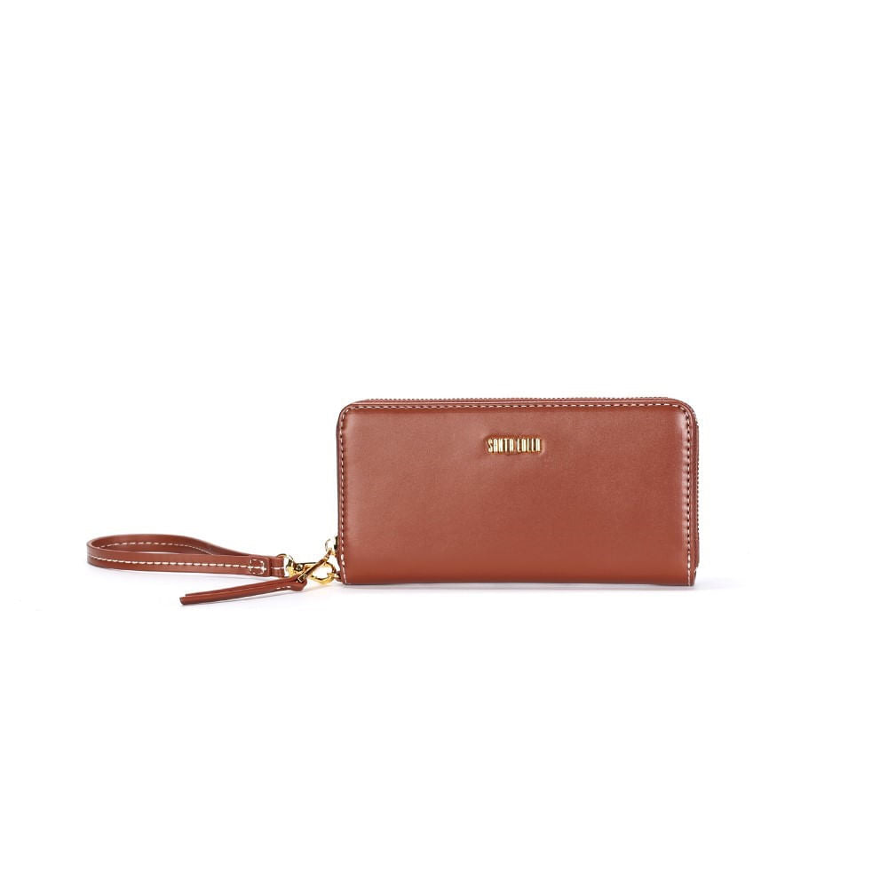 A Carteira Grande Marrom Santa Lolla Alça De Mão é o acessório perfeito para mulheres que valorizam estilo e praticidade. Com um design clássico e acabamento impecável, ela combina elegância e funcionalidade em uma única peça. Seus dois compartimentos com zíper dourado garantem segurança e organização para seus itens essenciais, enquanto a alça de mão removível adiciona versatilidade ao modelo. O detalhe do logo metálico na parte frontal é o toque final que eleva o charme dessa carteira indispensável.