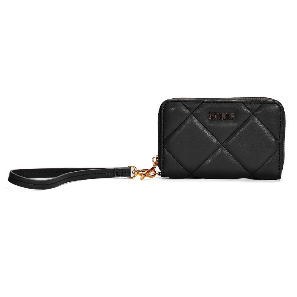 A Carteira Pequena Santa Lolla Preta Alça De Mão é extremamente versátil e combina com diferentes looks. Use-a com um vestido midi e sandálias para um visual sofisticado ou com jeans e camiseta para um estilo casual chic. Os detalhes metálicos dourados harmonizam perfeitamente com acessórios dourados, como brincos e pulseiras, criando uma produção elegante e moderna.