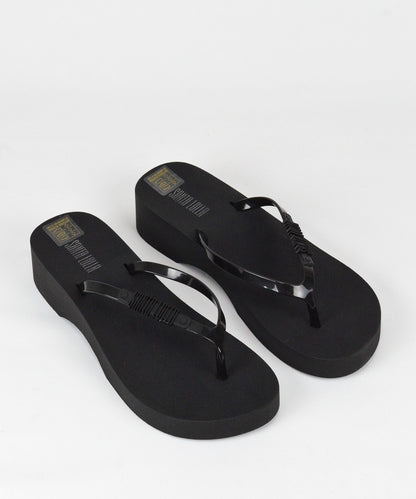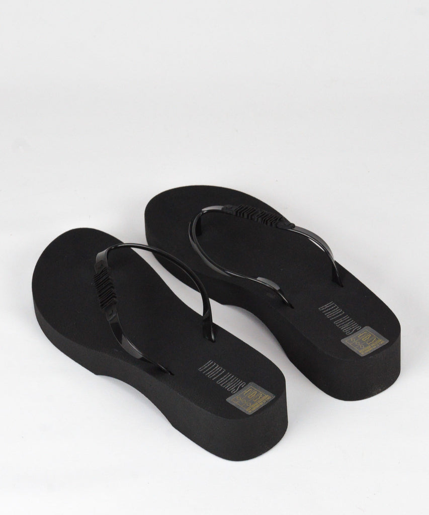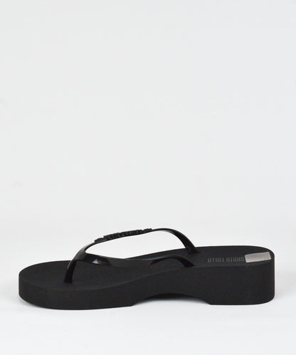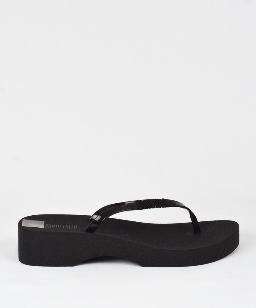Chinelo Santa Lolla preto em borracha com salto anabela.