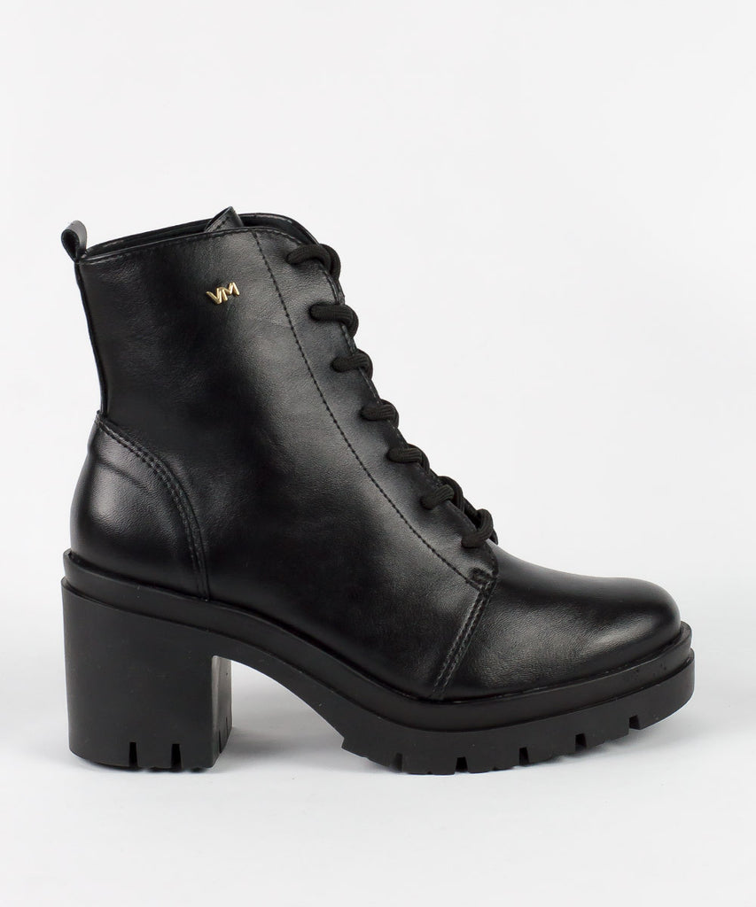 Coturno preto Via Marte em couro tratorado, com salto bloco de 7 cm. Ideal para looks modernos e elegantes, unindo conforto e estilo em qualquer ocasião.