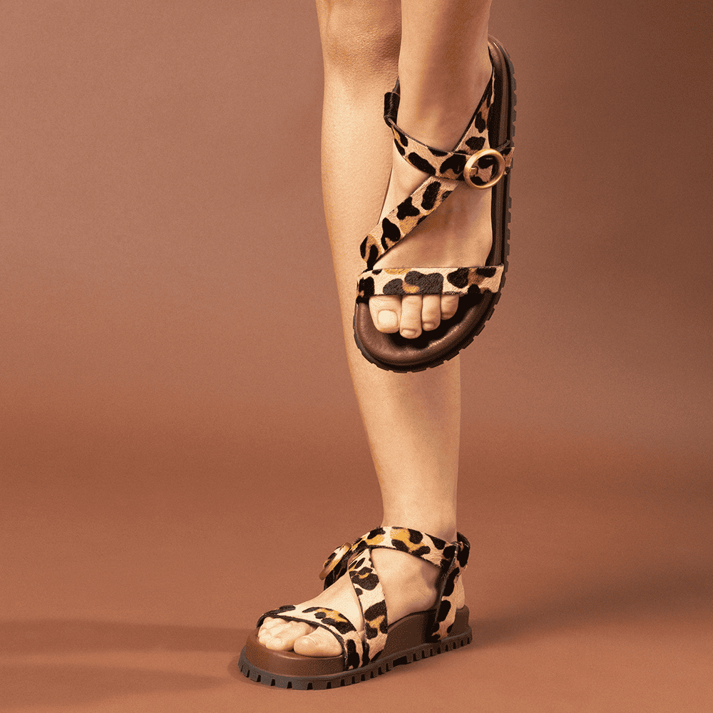 Estilo e conforto definem esta papete Santa Lolla com tiras em couro animal print de onça. O modelo traz uma pegada fashion com visual despojado, perfeito para quem busca praticidade sem abrir mão da personalidade. A palmilha anatômica e o solado tratorado garantem leveza e aderência para o dia a dia. Com detalhe de fivela dourada e tiras cruzadas, essa papete é ideal para compor produções casuais com um toque de ousadia.