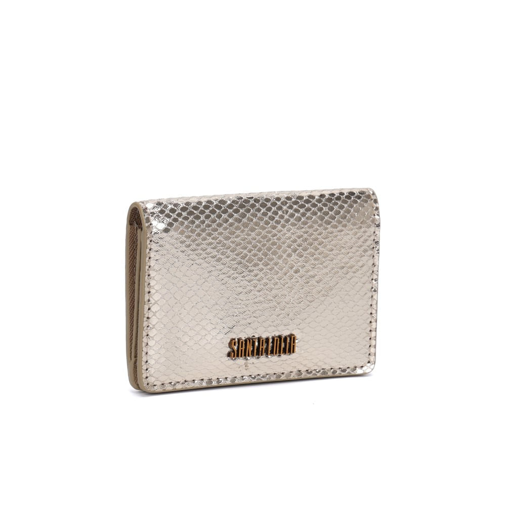 Combine o Porta Cartão Santa Lolla Dourado Metalizado com bolsas neutras ou metalizadas para criar um visual harmônico e moderno. Ele também é uma ótima escolha para complementar produções minimalistas, adicionando um toque de brilho e sofisticação. Ideal para presentear ou para compor seu próprio look com estilo e praticidade.