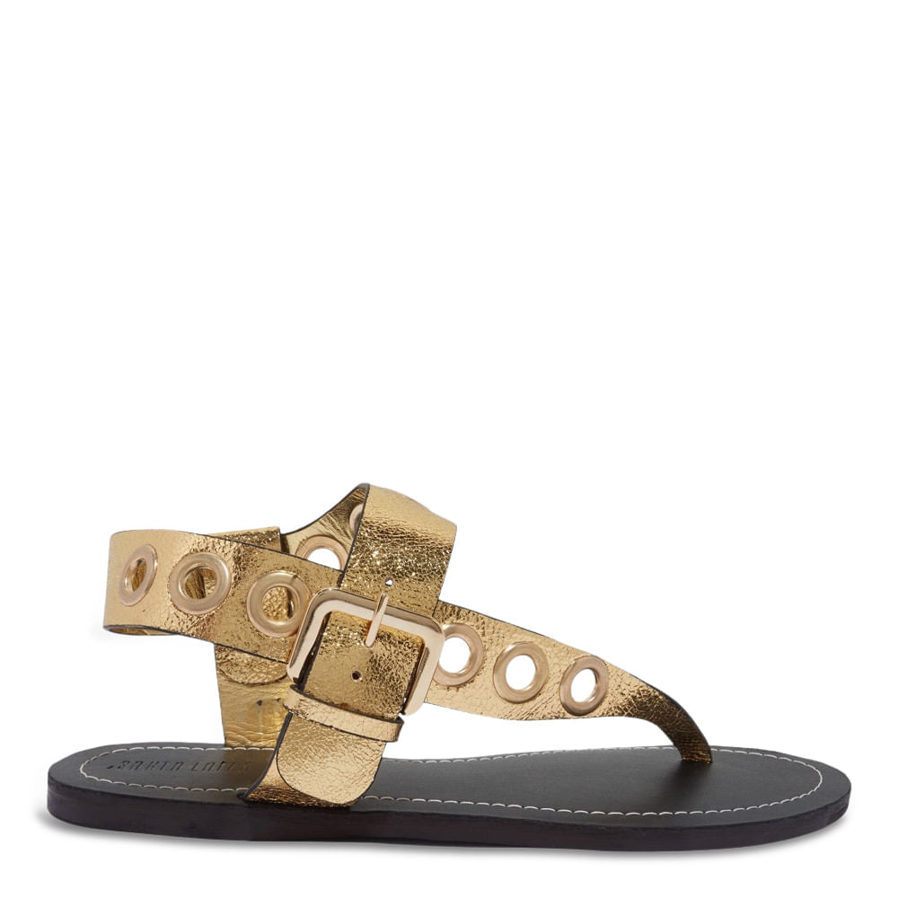 Experimente a sofisticação da Rasteira Flat Santa Lolla Dourada, confeccionada com solado flatform e bico arredondado. O design moderno conta com fecho em fivela e tira adornada com ilhós, adicionando um toque estiloso e contemporâneo ao seu look casual.
