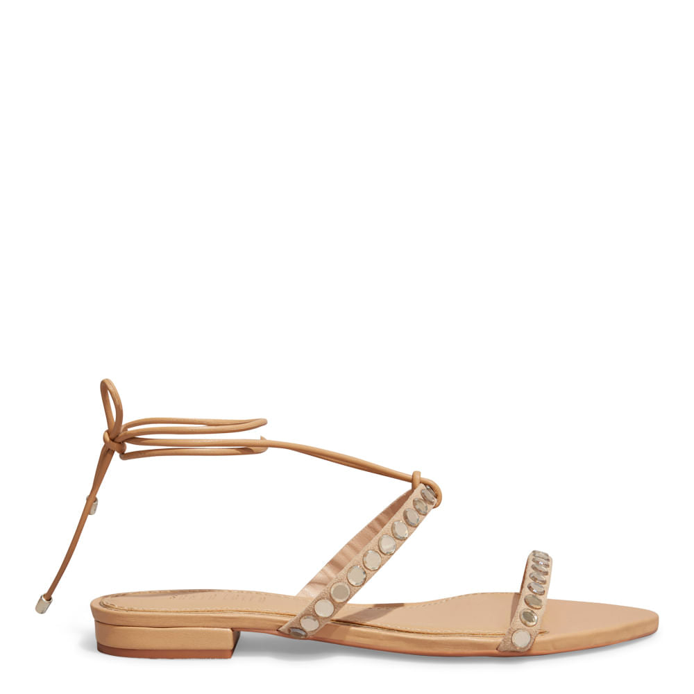 A rasteira Santa Lolla Bege é a união perfeita entre delicadeza e estilo. Com um visual elegante, possui tiras finas, amarração no tornozelo e pedrarias aplicadas que adicionam brilho na medida certa. O acabamento nude alonga a silhueta, combinando com tudo, desde looks casuais até produções mais refinadas para eventos diurnos.