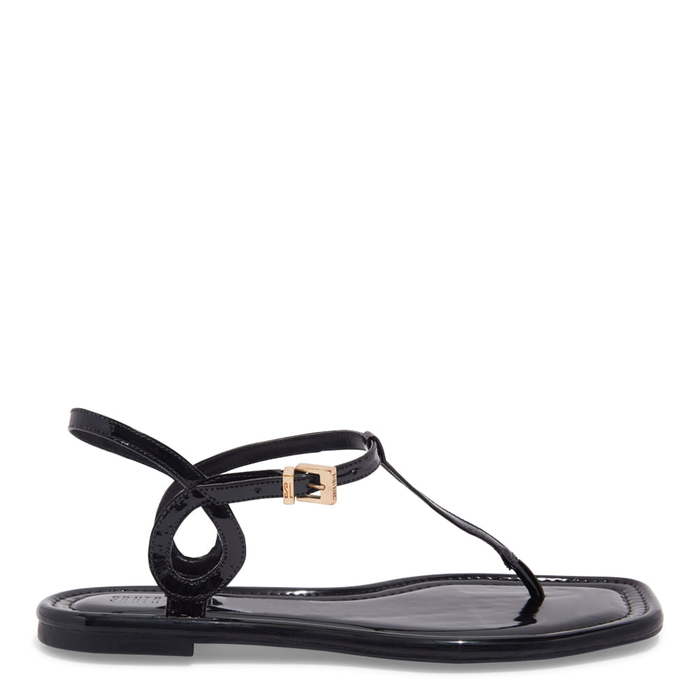 Apresentamos a Rasteira Santa Lolla na elegante cor preta, destacando um design sofisticado com tiras curvas e bico quadrado. Fabricada em material sintético, essa flat é ideal para diversas ocasiões, proporcionando conforto e estilo.