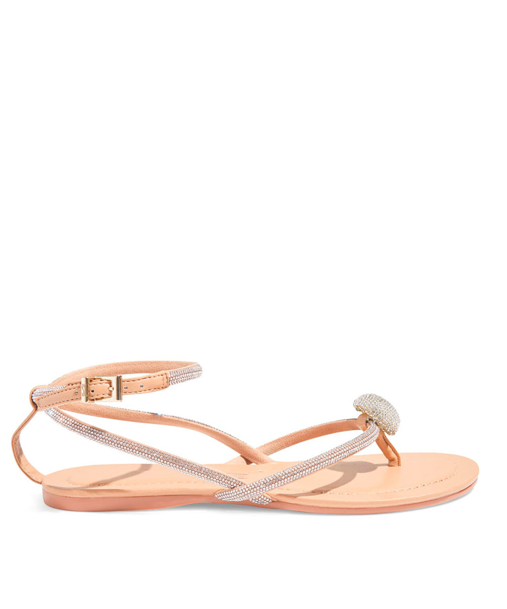 A rasteira flat, possui bico redondo, tiras finas e strass brilhosos. É uma peça refinada e versátil, perfeita para mulheres que buscam elegância, delicadeza e conforto em um único calçado.