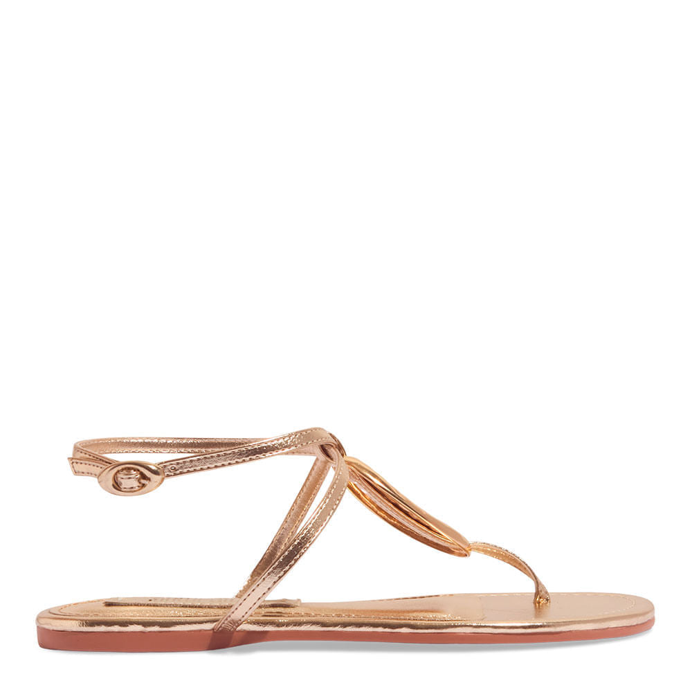 A Rasteirinha Dourada Santa Lolla Aplique Metálico é a escolha perfeita para quem busca elegância e conforto em um único calçado. Com design sofisticado, esta rasteira apresenta acabamento metalizado em tom dourado suave, ideal para compor looks modernos e versáteis. O modelo possui tiras finas que se cruzam delicadamente no peito do pé, proporcionando um ajuste seguro e confortável. O detalhe central em metal com textura polida adiciona um toque de glamour e exclusividade ao design.