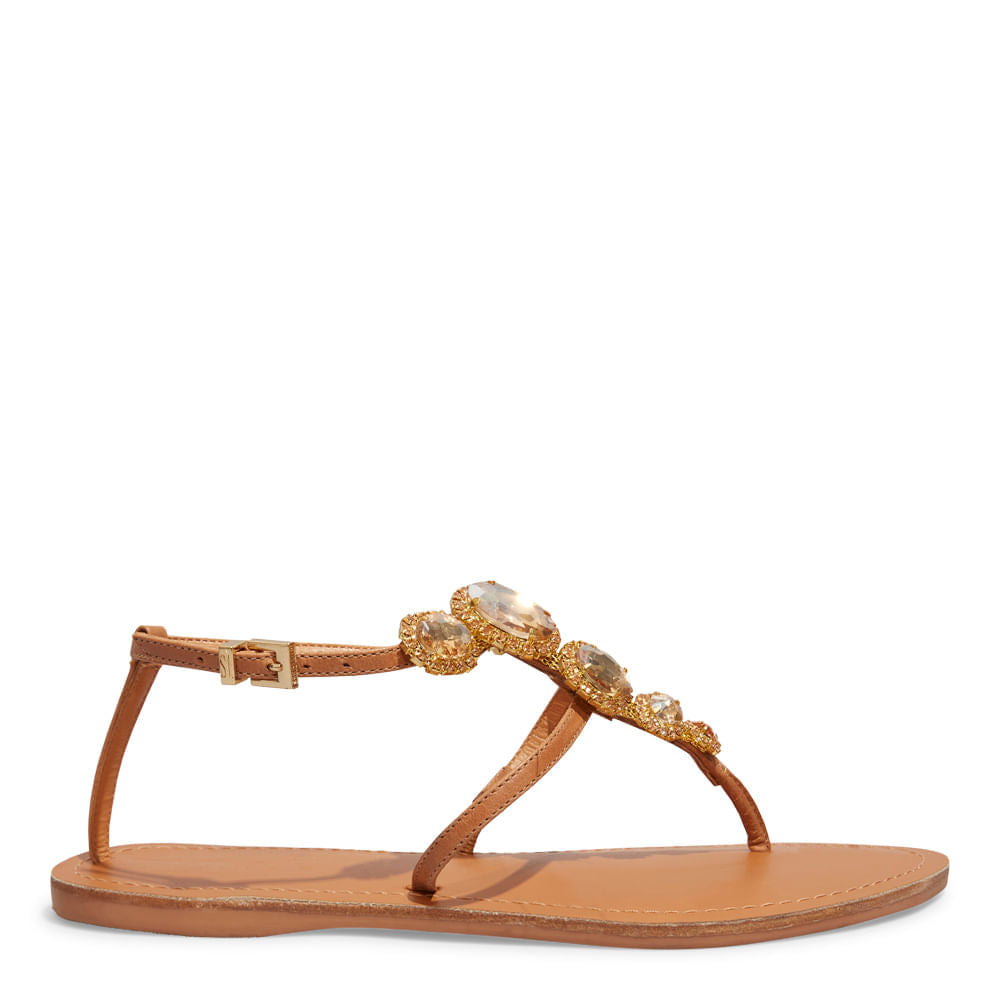 A Rasteirinha Santa Lolla Pedraria Caramelo Couro é a definição de sofisticação e conforto. Confeccionada em couro de alta qualidade, ela apresenta tiras finas e delicadas que garantem um ajuste perfeito aos pés. O grande destaque fica por conta das pedrarias douradas e translúcidas, que adicionam um toque de glamour ao design minimalista. A tonalidade bege, neutra e versátil, faz desta rasteirinha uma peça curinga para diversas ocasiões, enquanto a palmilha macia e o solado emborrachado proporcionam conforto durante todo o dia.