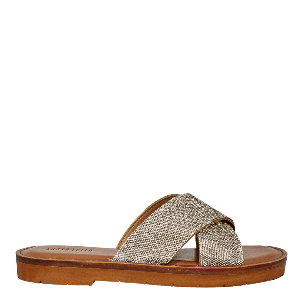 A Rasteira Trançada da Santa Lolla é um calçado prático e elegante, ideal para dias quentes. Feita em material sintético, apresenta design sem salto e solado plano, proporcionando leveza e conforto. As tiras trançadas, enriquecidas com strass, conferem um brilho sutil, adicionando um toque de glamour ao modelo.