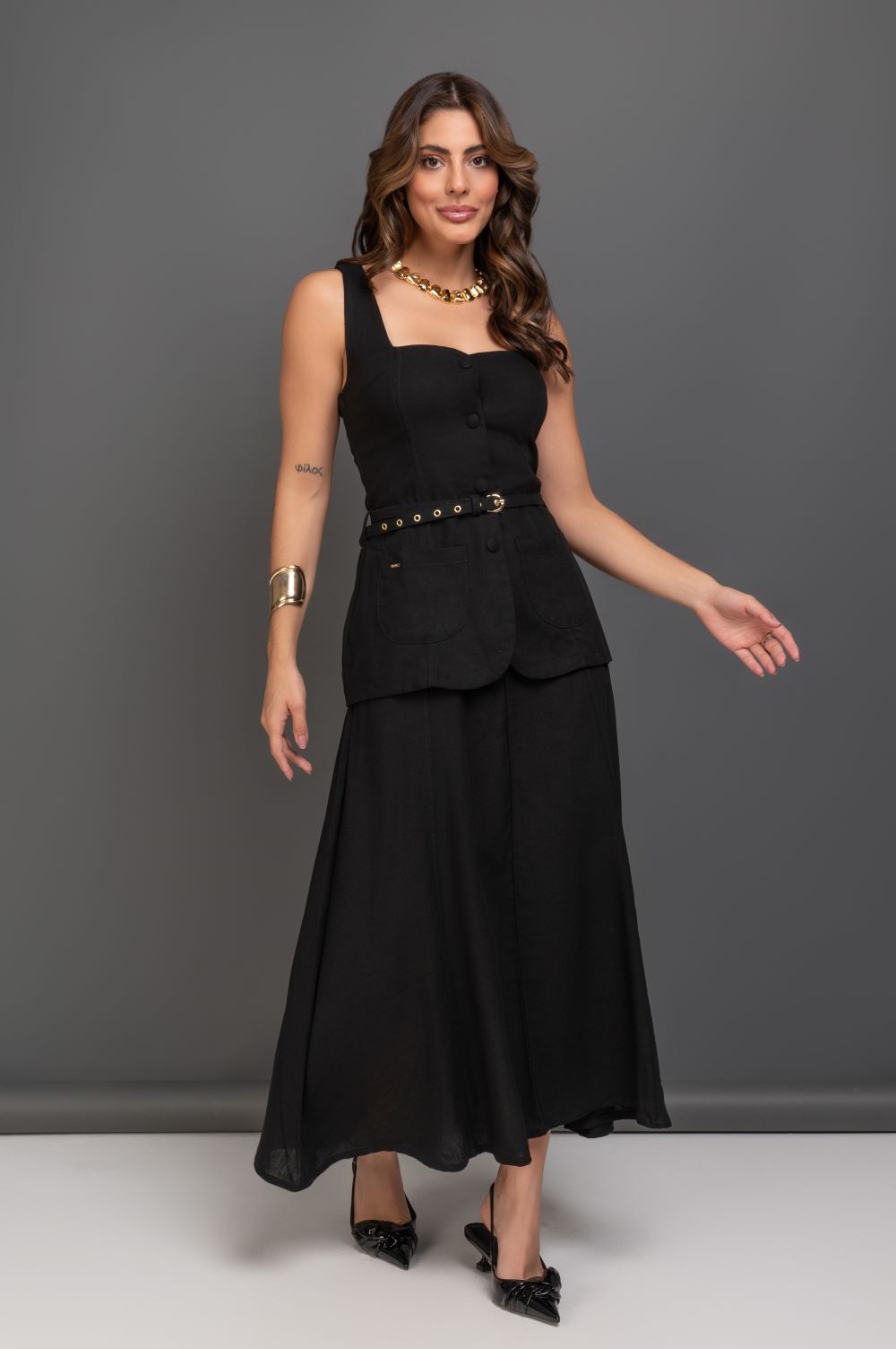 Esta saia longa é ideal para eventos formais e informais, proporcionando um visual chic sem esforço. Combine com blusas ajustadas ou camisas para criar um look elegante, ou explore combinações com acessórios para um toque mais casual. Seu design versátil permite que você transite do dia para a noite com estilo.