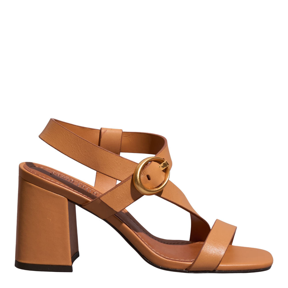 Aposte na elegância atemporal com esta sandália Santa Lolla em couro bege. Com tiras cruzadas que valorizam o pé e salto bloco, o modelo combina conforto e estilo para o dia a dia ou eventos especiais. O design com bico quadrado e fivela dourada traz um toque moderno e sofisticado.