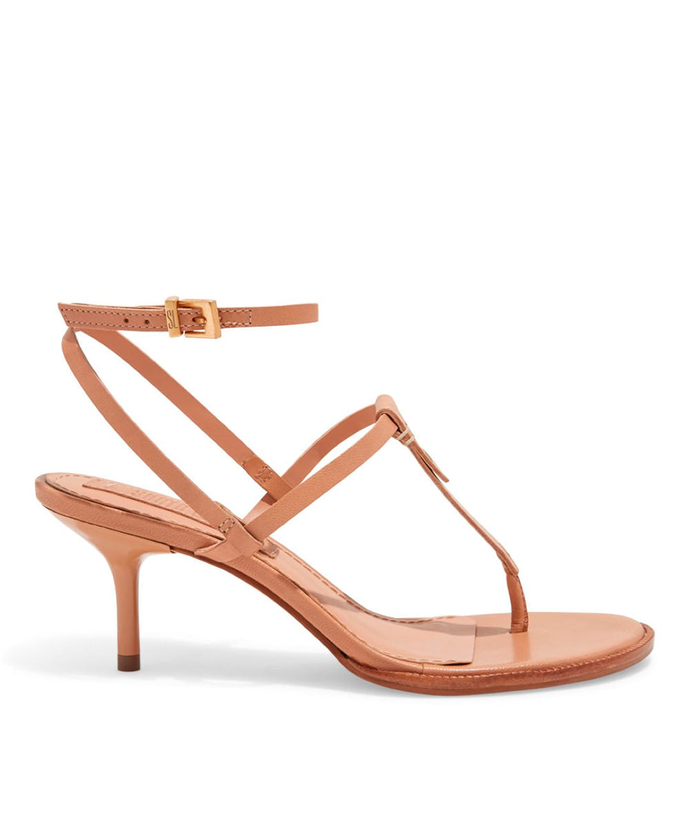 Sandália Couro Pelica Soft Bege Salto Médio