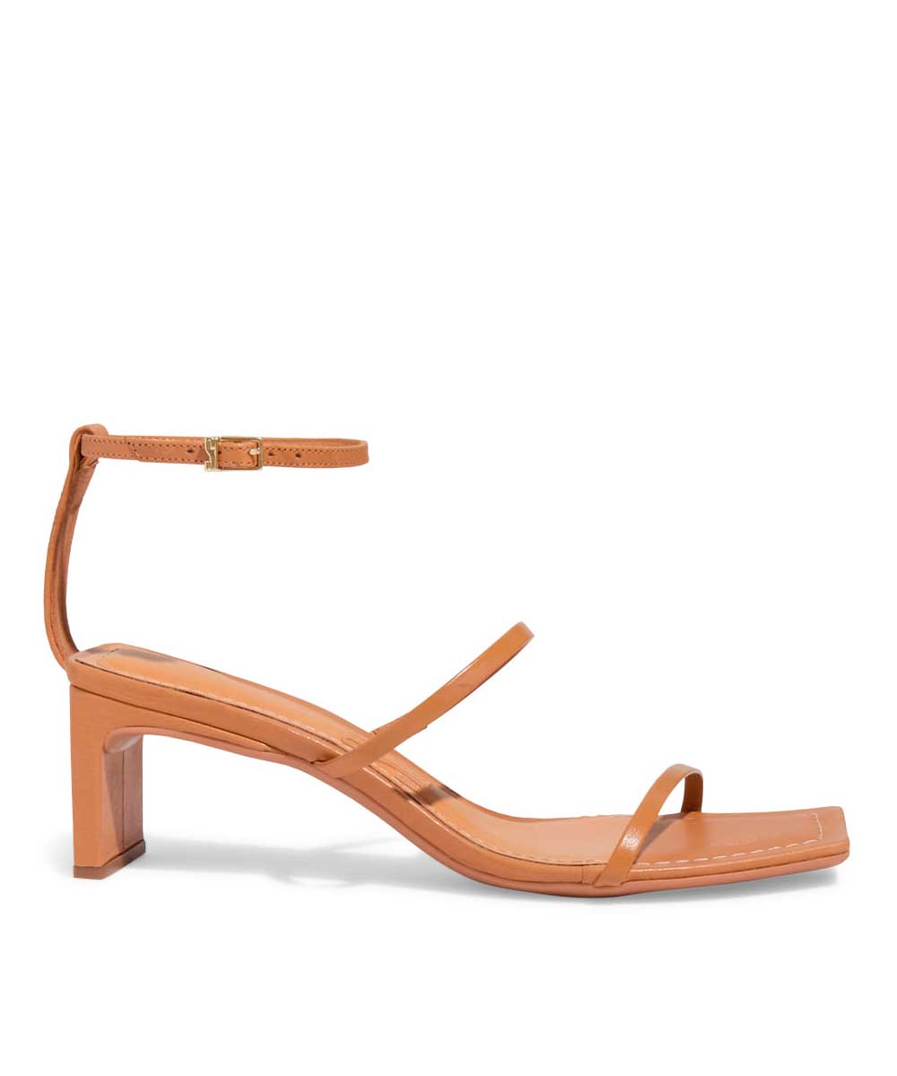 Sandália Bege, confeccionada em couro pelica. O modelo possui salto reto baixo, bico quadrado e fechamento lateral por fivela regulável. Traz tiras finas na parte do cabedal. Essa sandália é uma opção versátil que pode complementar uma variedade de looks, do casual ao mais formal, trazendo design elegante e moderno.