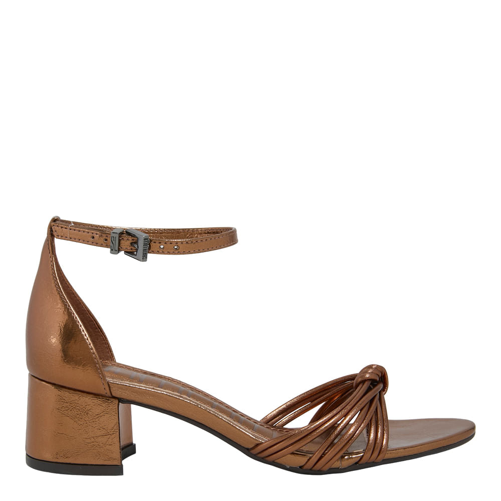 Ideal para quando você quer sair do básico com leveza: vai do almoço em um lugar charmoso ao happy hour e segue perfeita para um jantar. O metalizado bronze funciona como um “neutro iluminado”, valorizando a pele e destacando a produção mesmo com peças simples. Para dias mais corridos, ela entrega conforto visual e firmeza graças ao salto bloco e ao ajuste no tornozelo.