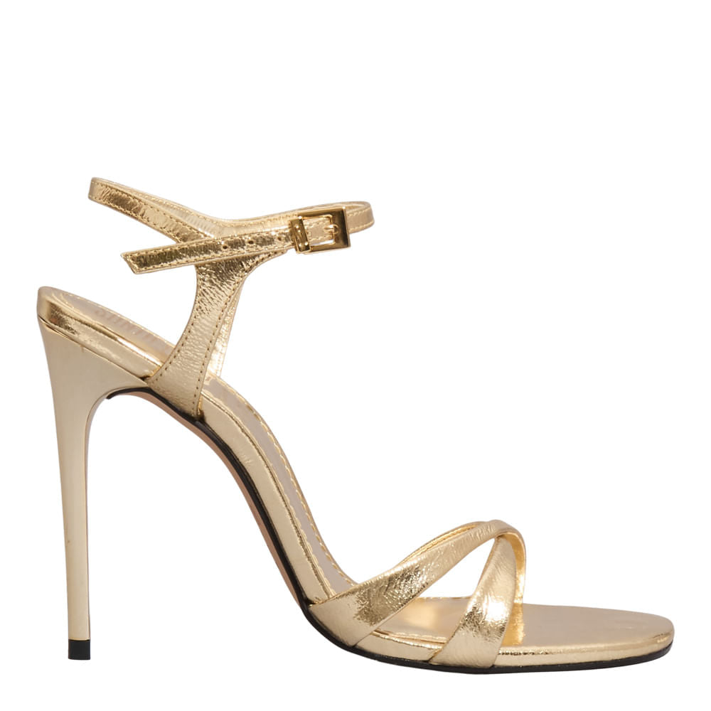 A Sandália Santa Lolla Dourada é a escolha perfeita para quem busca sofisticação e glamour em cada passo. Com design minimalista e acabamento metalizado, ela possui tiras finas que valorizam o pé e um salto alto fino, alongando a silhueta com charme.