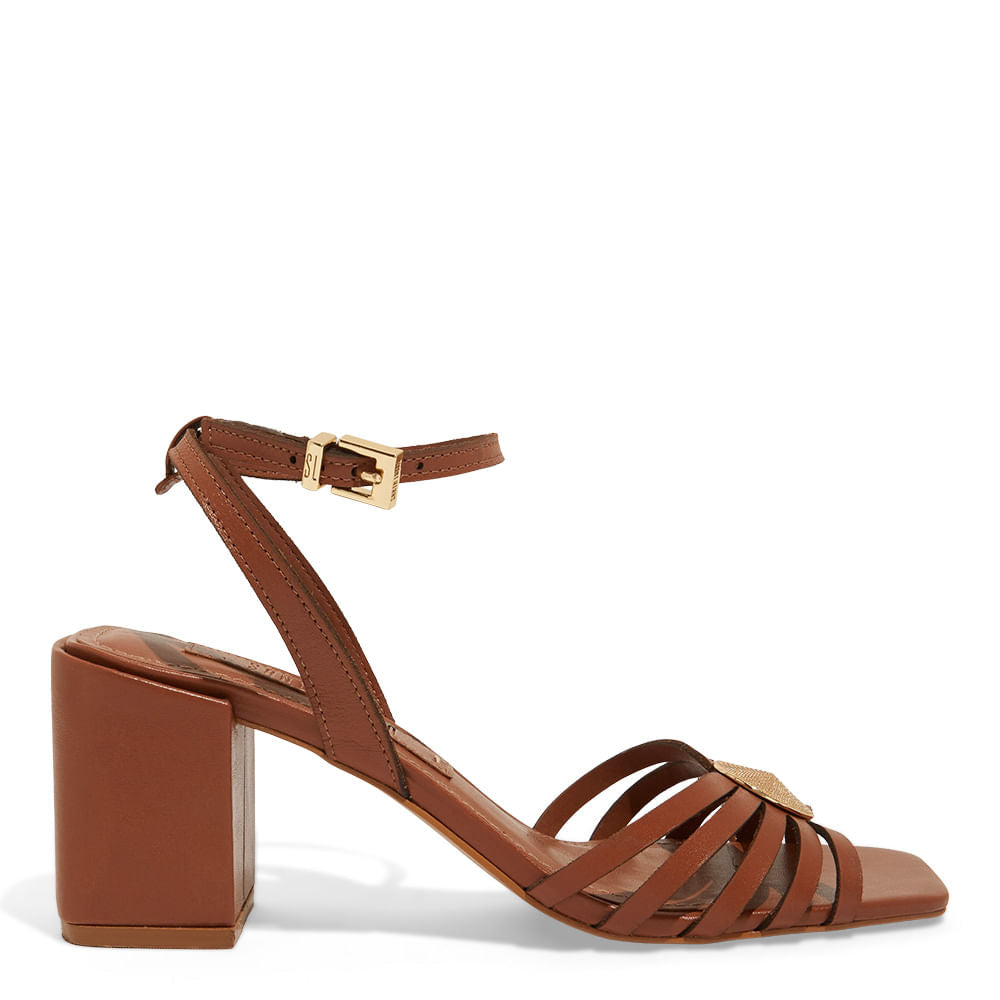 Descubra a sofisticação da Sandália com Salto Bloco da Santa Lolla, confeccionada em couro genuíno. Com bico quadrado e salto grosso, apresenta um elegante detalhe em metal dourado na parte frontal e fechamento prático em fivela. Uma peça chave para compor looks de elegância e estilo.