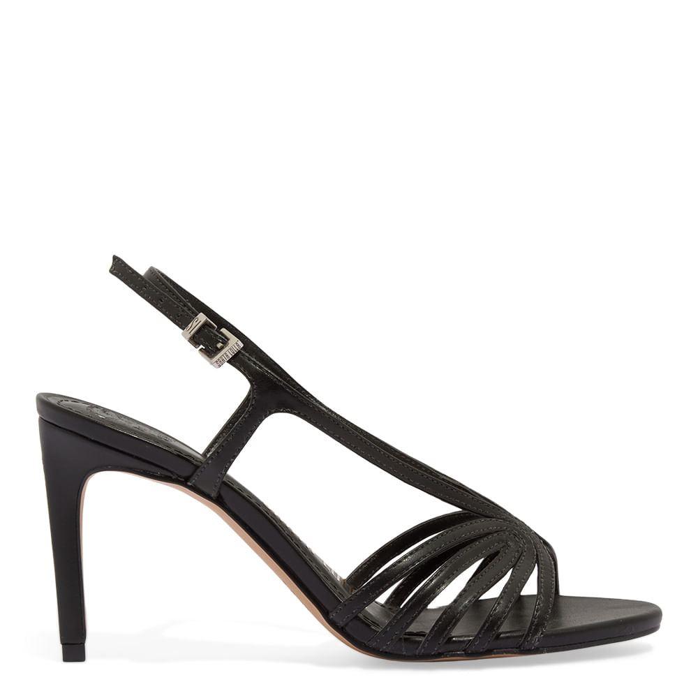 A sandália Santa Lolla preta é confeccionada em material metallic soft, oferecendo um brilho discreto e sofisticado. O design é moderno e minimalista, com um salto fino alto que adiciona altura e alonga as pernas, conferindo um toque de sensualidade e sofisticação.