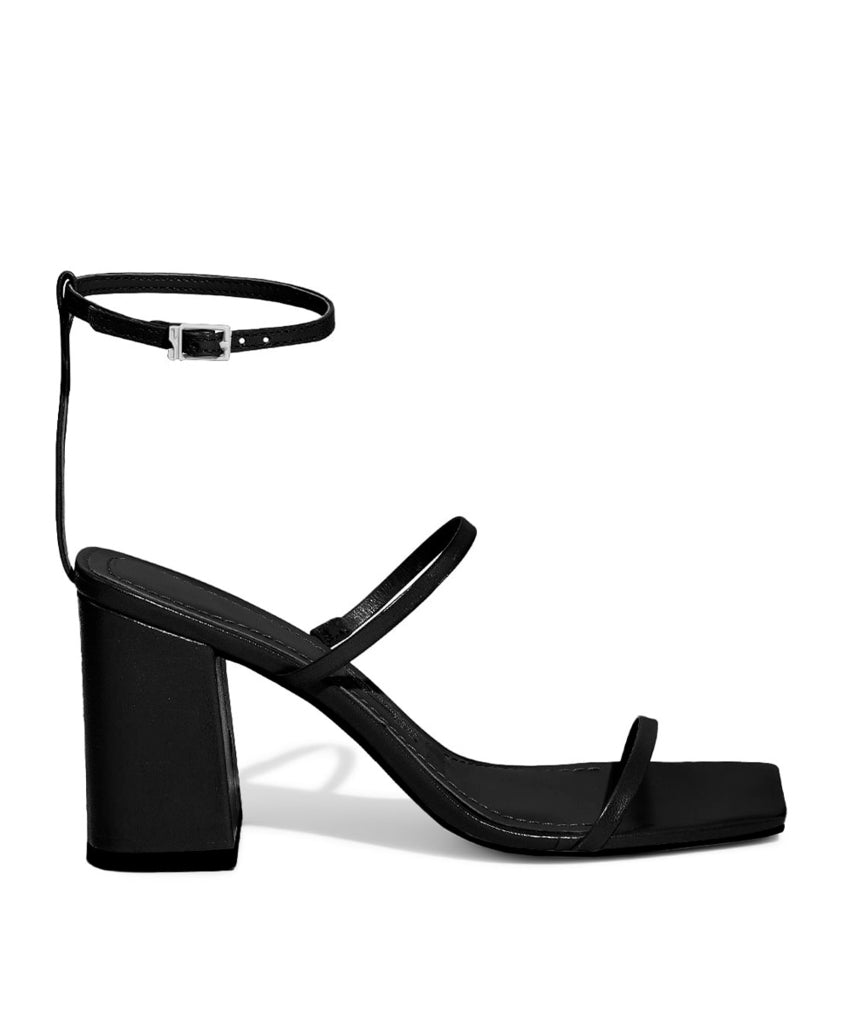 Sandália Santa Lolla preta tiras finas salto alto tipo bloco. Modelo confortável e elegante, fechamento por fivela. Possui salto de 8cm.
