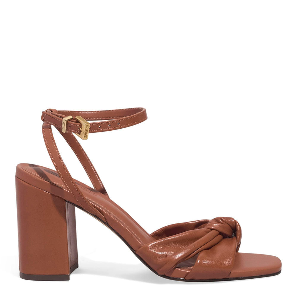 Perfeita para quando você quer estar arrumada com naturalidade: do escritório com uma calça de alfaiataria ao jantar de última hora com um vestido midi. A cor terracota funciona como um neutro quente, ideal para produções de meia-estação e para dar acabamento elegante em looks monocromáticos. Para eventos ao ar livre, ela garante um visual polido, com conforto de pisada e aquela atitude moderna do salto bloco.