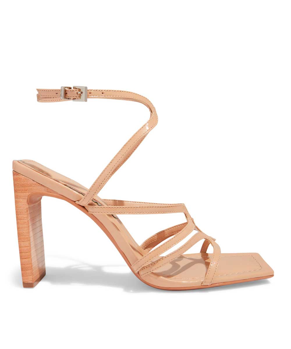 A sandáia em verniz, possui salto reto alto, bico quadrado, fechamento em fivela e pequeno detalhe na cor prata. Essa sandália oferece não apenas glamour, mas também um ajuste seguro e confortável ao caminhar.