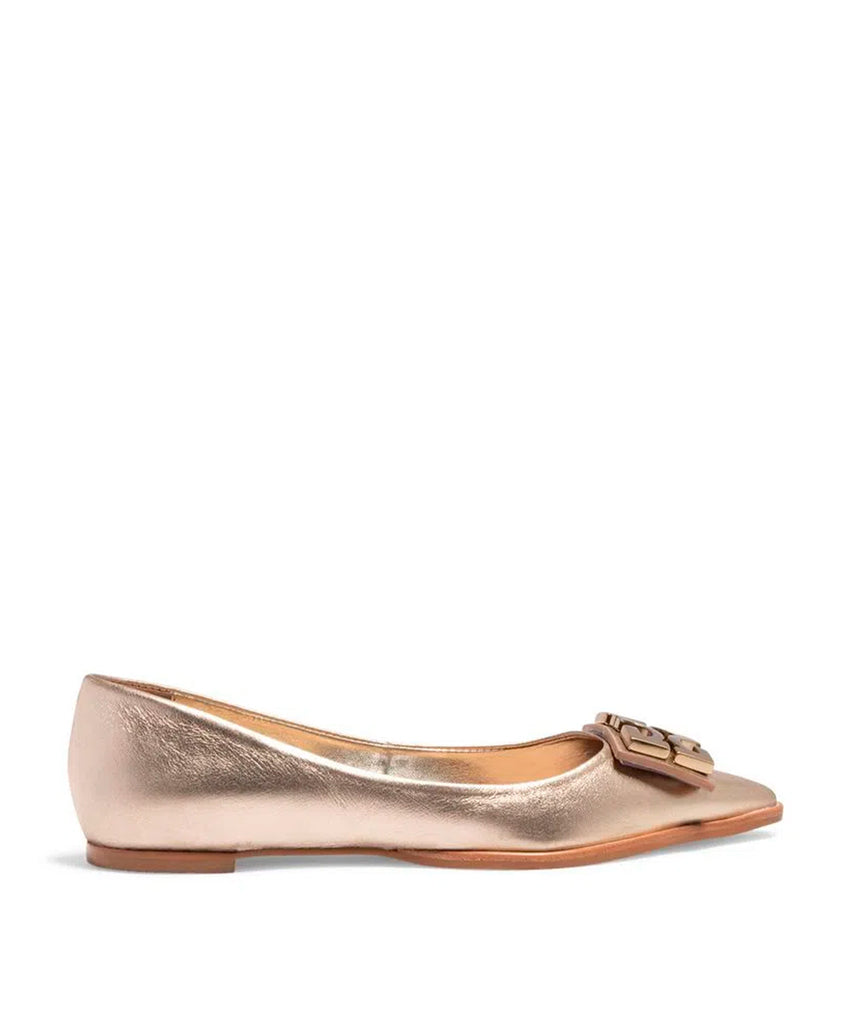 Sapatilha Degalls cor ouro light bico fino. Modelo moderno e confortável, conta com monograma da marca. Você vai amar. Confeccionada em couro legítimo.