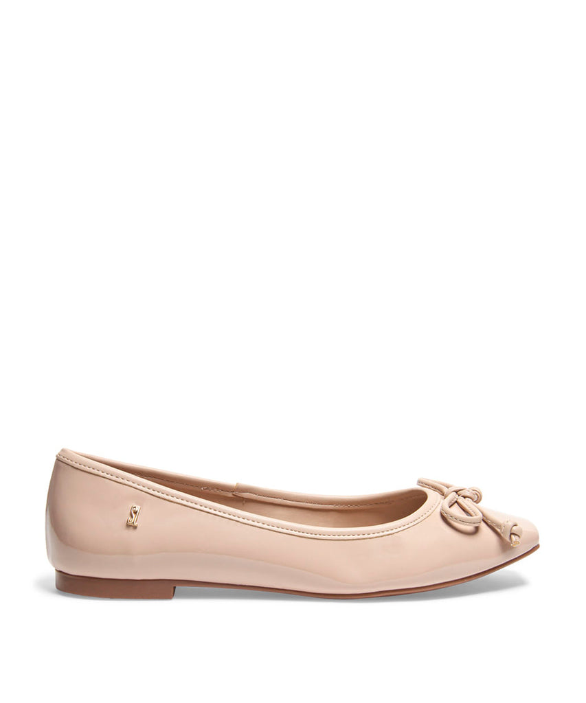 Sapatilha Santa Lolla nude em verniz anzeli. Modelo conta com bico quadrado e detalhe em laço. Clássica e elegante!