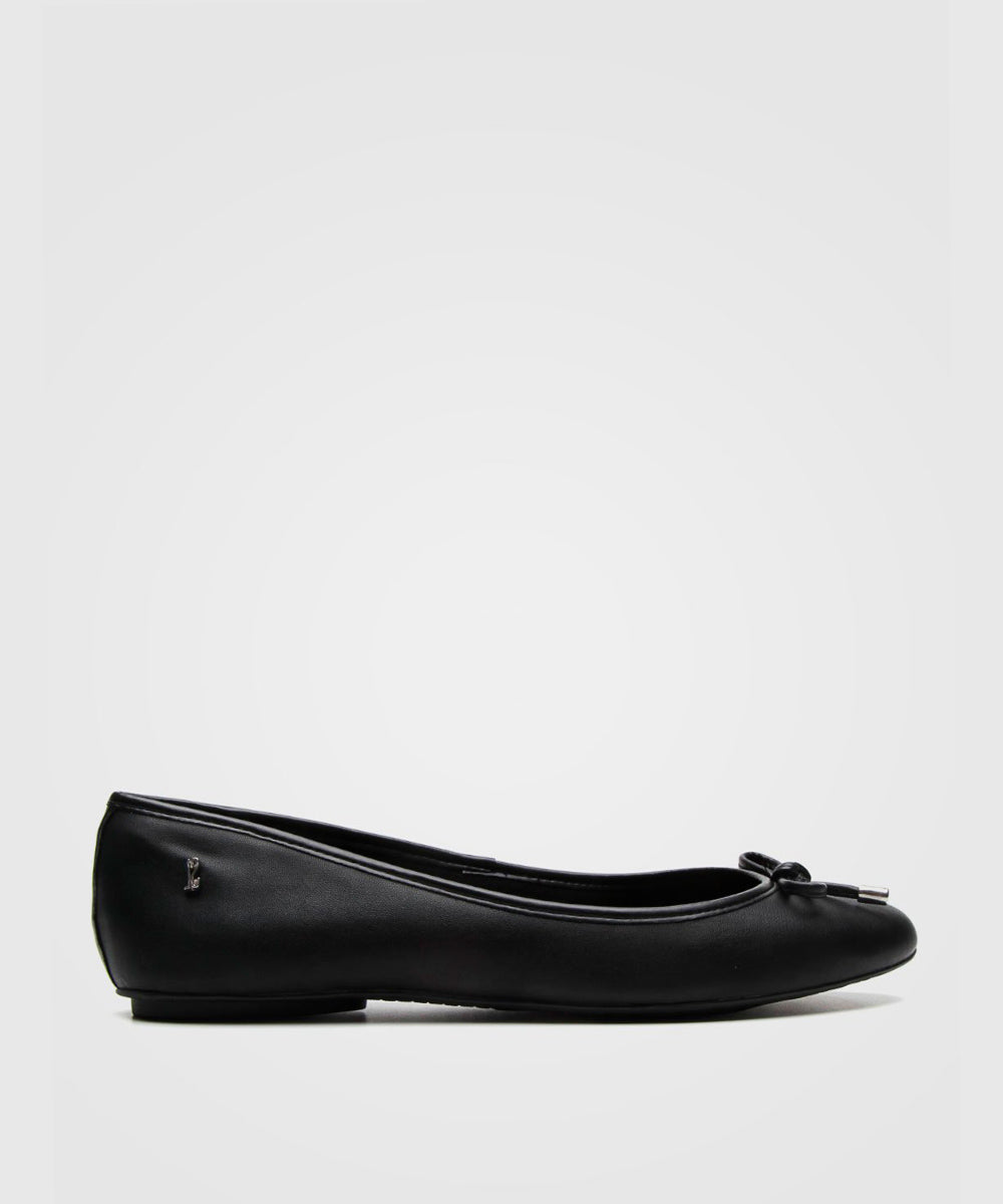 Sapatilha Santa Lolla preta bico redondo com detalhe em laço. Confortável e elegante, é perfeita para o dia a dia.