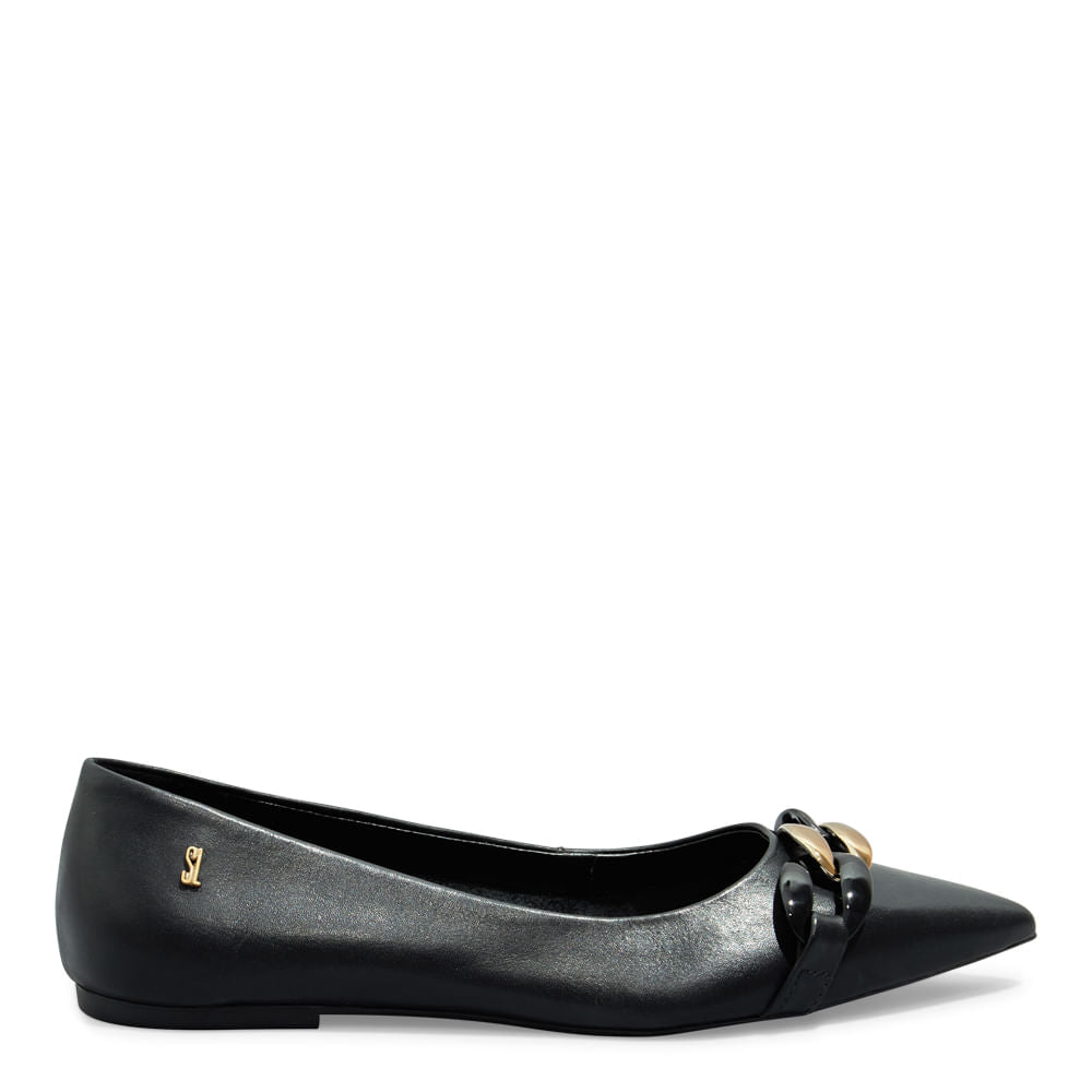 A sapatilha Santa Lolla preta de couro é a escolha ideal para quem busca sofisticação e conforto no dia a dia. Com bico fino, o modelo traz um toque elegante e moderno, perfeito para composições refinadas sem abrir mão da praticidade.