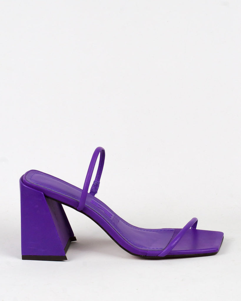 Tamanco Santa Lolla produzido em couro e em cor roxa. Conta com duas tiras finas e com um lindo modelo de salto grosso agregando elegância e conforto. Peça perfeita para quem ama praticidade sem perder o charme.